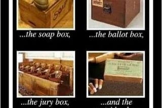 Frederick Douglass taught that a free republic rests on four essential boxes: the soap box (free speech), the ballot box (voting), the jury box (fair…