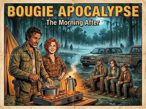 I leaned against the 4Runner, watching the tree line while they talked. The Cough had taken the world fast. Power was gone. Rules were gone. Hell, my iPhone didn’t have any signal, that felt weird. But we were still here — making coffee, sharing beans, and teaching strangers how to stay alive.