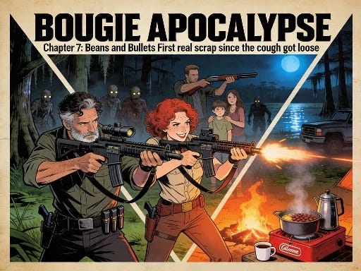 Come find us at JackHarlanStories.com and BougieApocalypse.com — same beans, same bullets, same stubborn civilization.