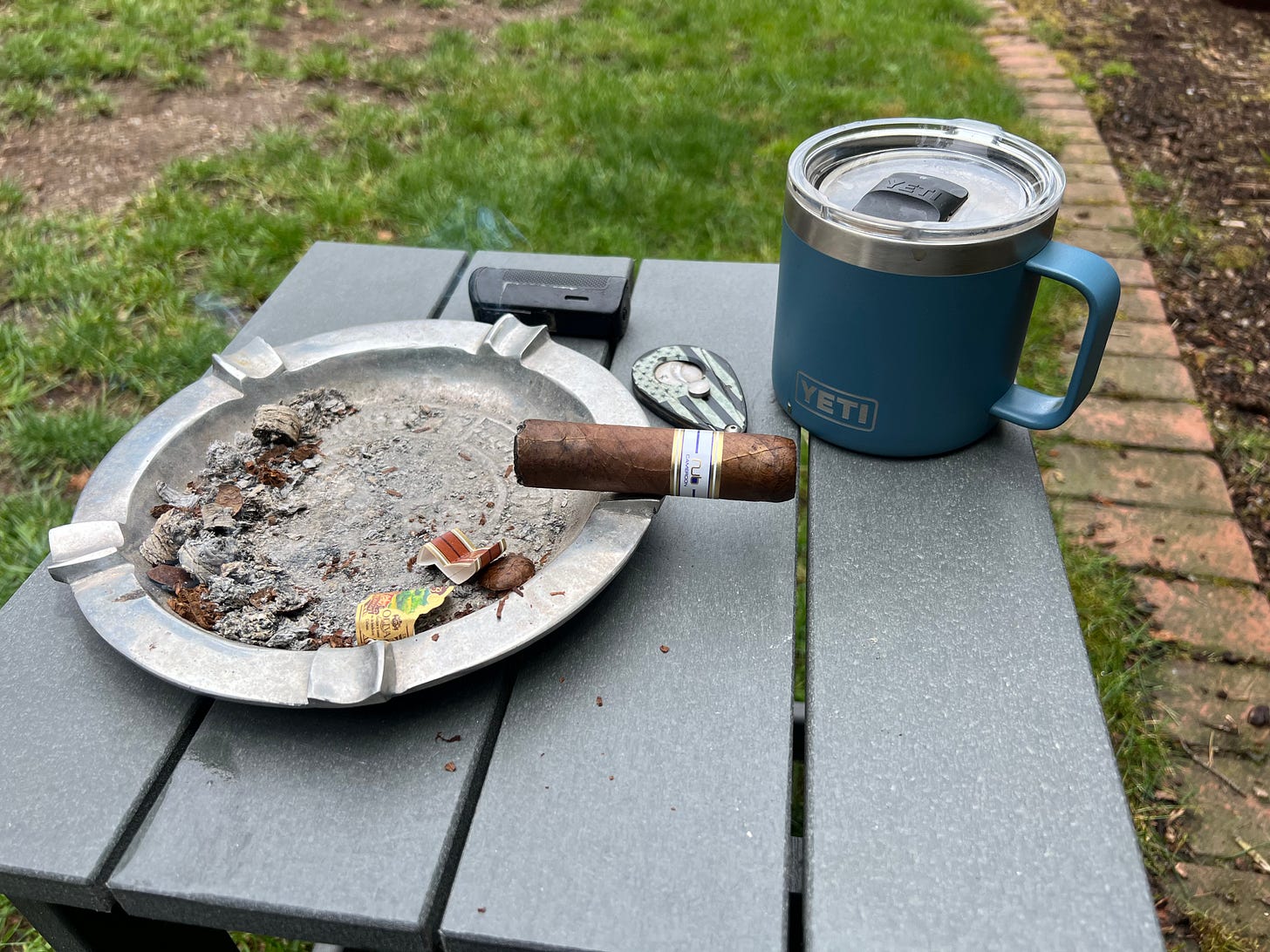 Today, we had breakfast at our local pub and now that the rain has blown away and the clouds are opening up a bit, I’m having a cigar in the backyard. My wife is puttering around in the garden, which is her joy on the weekend. The dog is running around and playing.