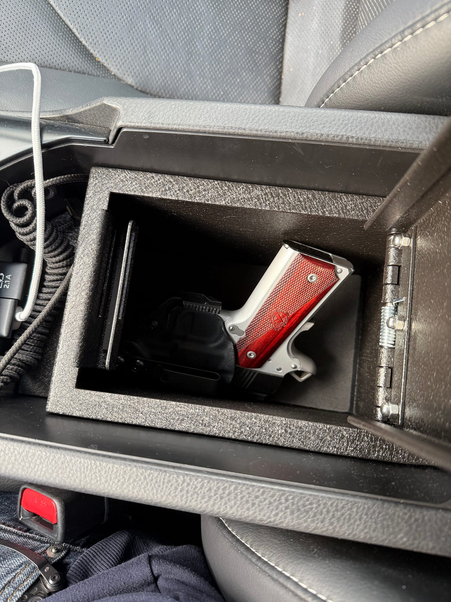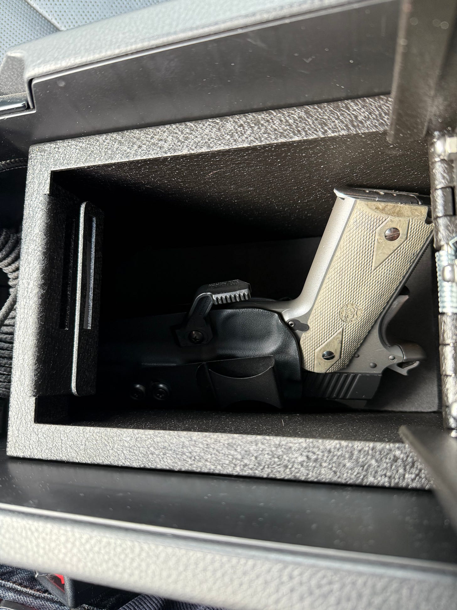So, I have this safe in my car. I bought it from Console Vault. You can get similar safes on Amazon for quite a bit less. However, they are Chinese knockoffs made with crappy materials. Do you really want to trust the security of your firearm to a crappy Chinese knockoff? So, go to Console Vault, use your military/LEO/First Responder status for a 10% discount, and get the real thing. They are on my If You’re A Veteran, Shop Like One post.