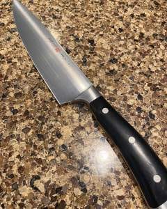 I have owned what I think is the best overall chef knife that you can buy for a decade now: A Wüsthof Ikon Classic 8” Chef Knife. I’ve been using it to cut up chicken, chop vegetables, cut briskets, cube up beef, and everything else in the kitchen for 10 years. It never slips in my hand, the blade is very precise, and it stays fairly sharp.